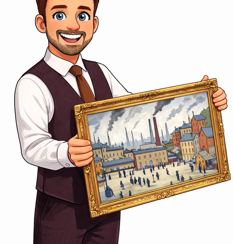 The influence of renowned artist L.S. Lowry resonates through the works of many artists whom I collect, a sentiment echoed by the artists themselves. Known for his distinctive style that captures the essence of industrial landscapes and the daily lives of working-class individuals, Lowry's ability to evoke emotion and narrative through simple yet powerful imagery has left a lasting impression on the art world.