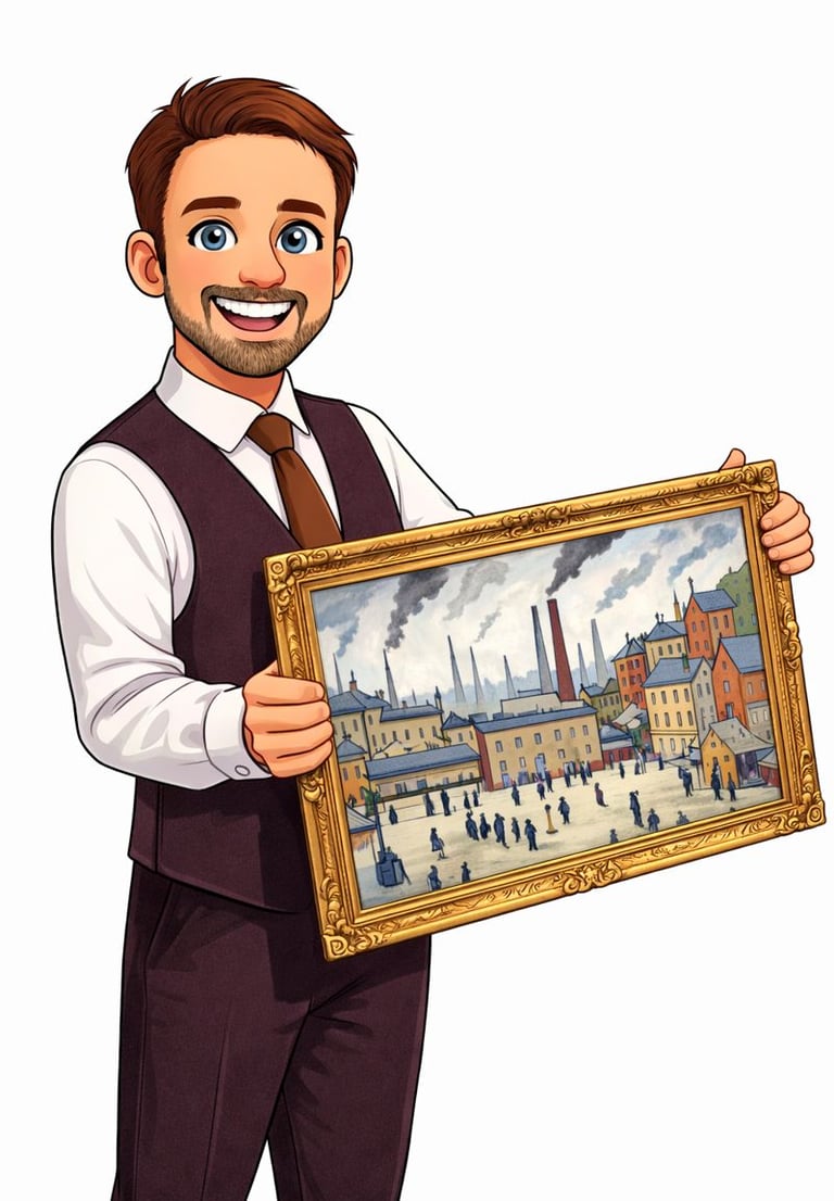 The influence of renowned artist L.S. Lowry resonates through the works of many artists whom I collect, a sentiment echoed by the artists themselves. Known for his distinctive style that captures the essence of industrial landscapes and the daily lives of working-class individuals, Lowry's ability to evoke emotion and narrative through simple yet powerful imagery has left a lasting impression on the art world.